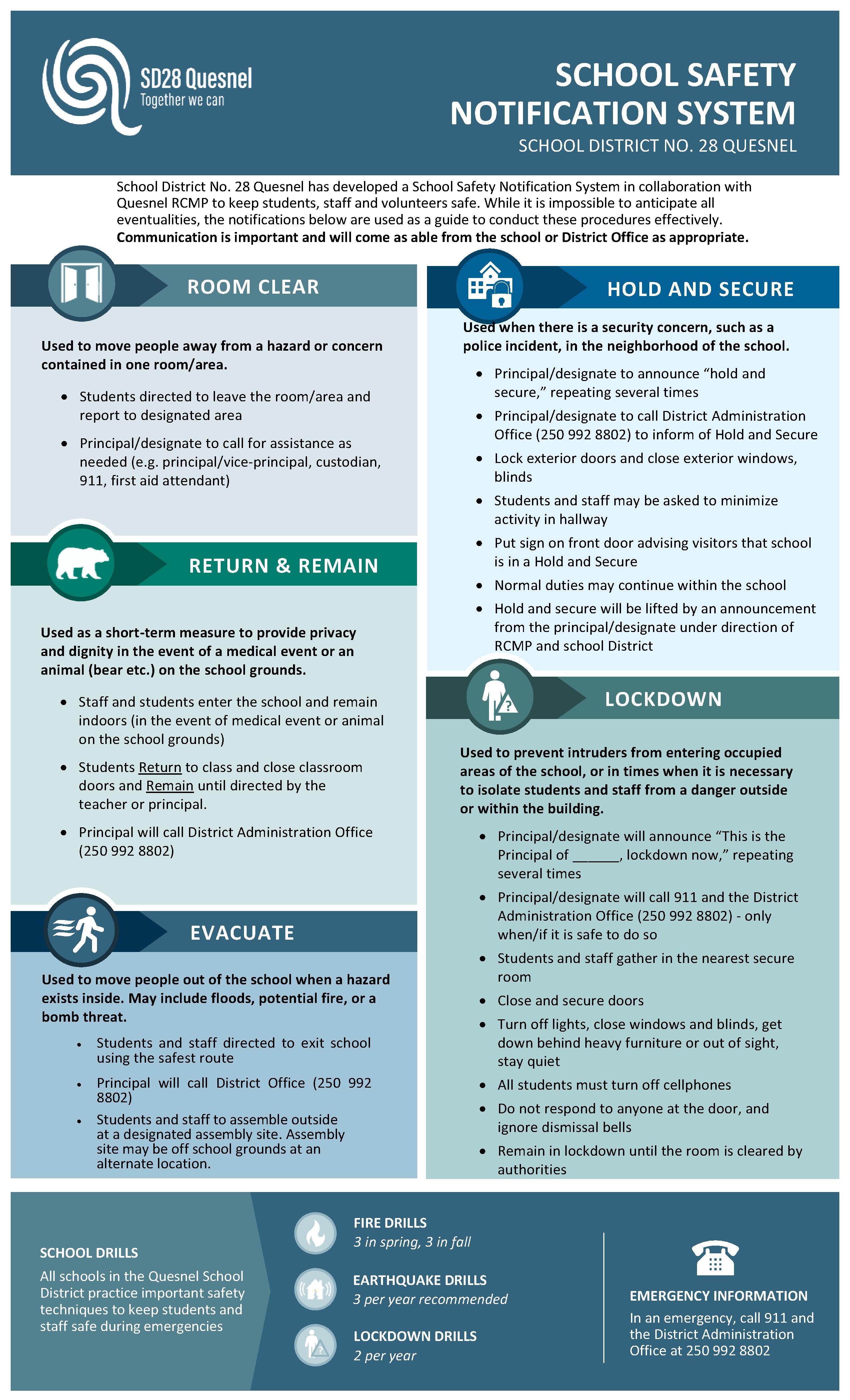 The District Health & Safety Committee meets monthly to review site's Health & Safety information and concerns. If you have any questions or concerns, please contact the site manager.